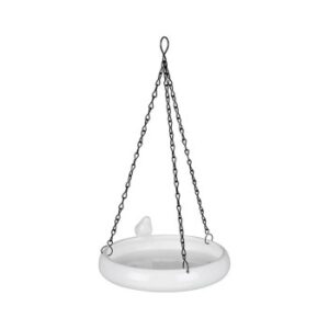 Die hochwertige Tränke mit kleinem Vogel aus Keramik kann als Trink- und Badeschale genutzt werden. Im Winter ist die Tränke zum Aufhängen unter einem Dachüberstand auch als Futterschale praktisch. Fassungsvermögen: 500ml Durchmesser: 21cm