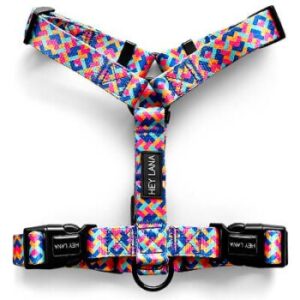 Das passende Geschirr zum Halsband- und Leinenset aus der Kollektion Kunterbunt. Mit unserer Kunterbunt Kollektion macht die Gassirunde gleich noch viel mehr Spaß, denn mit dem atemberaubenden Farbspiel zieht ihr alle Blicke auf euch!Das besondere an dem Geschirr ist, dass es 5-fach verstellbar ist. Es ist nicht nur am Bauch und an der Brust verstellbar, sondern auch am Bauchsteg. Somit ist es für viele verschiedene Passformen geeignet – von kleinen und schmalen bis sehr großen und kräftigen Hunden. Daher ist es auch besonders gut für Welpen geeignet, denn das Geschirr kann lange Zeit benutzt werden, auch wenn er noch wächst. Die Größen überlappen sich, so dass für das Heranwachsen dasselbe Geschirr genutzt werden kann.Die verwendeten Materialien bestehen aus einem thermoplastischen Nylongewebe, das eine sehr hohe Festigkeit besitzt. Das Gewebe ist besonders reiß- und scheuerfest und nimmt kein Wasser in seine Fasern auf. Der Stoff ist sehr leicht, strapazierfähig und langlebig. Die exponierten Stellen werden zweifach vernäht, somit ist das Geschirr besonders zieh- und reißfest. Durch Clips auf beiden Seiten der Brust lässt sich das Geschirr leicht an- und ausziehen.Passend zu dem 5-fach verstellbarem Geschirr gibt es eine Führleine (3-fach verstellbar), sowie ein Halsband. Der Zweibeiner kommt auch nicht zu kurz, denn für ihn gibt es einen passenden Kotbeutelspender, welcher einfach an der Leine oder am Hosenbund befestigt werden kann.