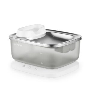 Der Poseidon Trinkbrunnen XL setzt neue Standards in der tierischen Hydrationstechnologie. Dank seiner kabellosen Stromversorgung und der enormen Kapazität mit 7 Liter großen Fassungsvermögen ist er überall flexibel einsetzbar und minimiert den Bedarf an häufigem Nachfüllen. Die integrierte Wasserfiltration sorgt kontinuierlich für sauberes und frisches Wasser, während der leise Betrieb sowohl Haustiere als auch ihre Besitzer ungestört lässt. Die einfache Reinigung, eine tiefe Trinkschale von 350 ml und eine beeindruckende Laufzeit von ca. 40 Tagen unterstreichen die Benutzerfreundlichkeit dieses Systems. Darüber hinaus wird durch sensorgesteuerte Wasseraktivierung gewährleistet, dass Wasser nur dann fließt, wenn dein Haustier trinken möchte, was die Flüssigkeitsaufnahme und damit die Gesundheit deines Tiers fördert. Funktionshighlights: Kabellose Stromversorgung: Flexibilität in der Aufstellung ohne Abhängigkeit von Steckdosen (Laufzeit ca. 40 Tage). 7 Liter Wasserreservoir: Vermindert die Notwendigkeit des häufigen Nachfüllens. Wasserfiltration: Sichert die Sauberkeit des Wassers. Leiser Betrieb: Keine Störung für Haustiere und Besitzer. Einfache Reinigung: Einzelteile können bequem gereinigt werden. Fördert die Gesundheit: Erhöht die Flüssigkeitsaufnahme durch ständige Verfügbarkeit von frischem Wasser. Sensorgesteuerter Wasserfluss: Aktiviert den Wasserfluss bei Annäherung des Haustieres, spart Energie und Wasser. Kabellose Pumpe: Unterstützt den unkomplizierten Betrieb und die einfache Handhabung. Tiefe Trinkschale (350 ml): Bietet auch größeren Hunden bequemen Zugang zum Wasser. Mit seiner umfassenden Kapazität und der perfekten Kombination aus Innovation und Komfort ist der Trinkbrunnen XL Poseidon Series eine Investition in das Wohlbefinden, die sich jeden Tag aufs Neue auszahlt.
