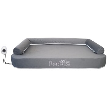 Die Gelenke und Muskulatur entspannen und fördert somit die Durchblutung. Somit kann sich dein Hund schnell für sein nächstes Abenteuer regenerieren. Der Schlaf auf Wasser hilft deinem Hund, schnell seine Schlafposition zu finden. Auch bei älteren Hunden kann sich das Wohlbefinden durch den schwerelosen Schlaf verbessern und somit eine sinnvolle Unterstützung einer Therapie werden (z.B. Arthrose oder ähnliche Beschwerden). Dieses Hundewasserbett ist mit einem energiesparendem Heizsystem ausgestattet. Hier kann eine Wohlfühltemperatur zwischen 25-35°C gewählt werden, so wie es dein Liebling gerade braucht. Der Bezug ist ein leicht zu reinigender Stoff mit einer Nanopartikel-Ausrüstung, die das Eindringen von Schmutz wirksam verhindert. Die Easy-Clean-Technologie ermöglicht die Entfernung selbst hartnäckiger Flecken ohne chemische Reinigungsmittel, einfach mit Wasser. Auch Hunde- und Katzenhaare lassen sich leicht entfernen. Das Petbed besteht aus einer abnehmbaren Kopfstütze. Diese ist mit einem Reißverschluss an der Matratze befestigt. Die Wassermatratze liegt sicher in einer Schaumwanne und einer robusten Sicherheitsfolie. Der Wasserkern wird zusätzlich von einer 2cm dicken Schaumplatte von oben geschützt. Das Petbed wird durch Handarbeit in der EU gefertigt und bestickt, somit wird jedes Bett zum Unikat. Abmessungen: 120x70cm oder 90x50cm – 22cm hoch inkl. Kopfstütze