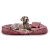 Orthopädisches Hundebett ALBERTO in Vintage Style ORTHOPÄDISCH | mobile 3-Schicht-Matratze | schweben auf Visco WASCHBAR | Abnehmbarer Bezug | Maschinenwäsche Schongang VINTAGE STYLE | Ein individueller Augenschmaus im Antik-Look ANTIRUTSCH | atmungsaktives Spannvlies mit Anti-Rutsch-Stoppern SAMTWEICH | angenehmes und weiche| optimales Wohlfühlerlebnis Achtung! Als Liegefläche des Bettes gelten die Innenmaße! Das Hundebett ALBERTO besticht nicht nur durch seine außergewöhnliche Kunstleder Optik im antiken Vintage-Style. Das waschbare Velours ist angenehm weich und langlebig und bietet somit Ihrem Vierbeiner Geborgenheit und einen entspanntes Schlafen. ALBERTO besteht aus einem dicken, aber auch weichen, strapazierfähigen und pflegeleichten Polsterstoff in Kunstleder-Optik. Der Bezug ist einfach sauber zu halten, kann aber über den Reißverschluss abgenommen und schonend bei 30°C gewaschen werden, ohne dabei die Form zu verlieren. Die Unterseite des Hundebettes besteht aus einem atmungsaktivem Polyesterstoff mit Anti-Rutsch-Stoppern. Die Hundematratze wird aus einer unteren Lage PUR-Schaum und einer oberen Lage Formgedächtnisschaum Visco (Memory Foam) hergestellt. Diese humanmedizinisch bewährte Materialwahl eignet sich für Hunde, die von Risiken oder Schäden an Knochen, Gelenken oder Wirbelsäule betroffen sind. Die Serie besteht aus 4 Größen (M 80cm, L 100cm, XL 120cm und Übergroße XXL 150cm) und 4 klassichen Farben. Pflegehinweis Bitte den Bezug nur mit geschlossenen Reißverschlüssen waschen! Waschen mit Feinwaschmittel ohne Weichspüler per Handwäsche bei max. 30°C Nach dem Waschen sanft in Form ziehen und die Reißverschlüsse immer vorsichtig öffnen und schließen! Nicht trocknergeeignet, nicht bügeln, nicht chloren, nicht bleichen. Kunstleder zur Reinigung nass abwischen, waschen ist nicht nötig. Versandhinweis Das Produkt wird für den Transport platzsparend zusammengerollt und sehr eng in einem Karton verpackt. Bitte legen Sie das Hundebett nach dem Auspacken mindestens 12 – 24 Stunden bei Raumtemperatur aus. So gewährleisten Sie, dass sich die Schaum-Silikonflocken und die anderen Materialien aklimatisieren und danach auch wie gewünscht liegen.
