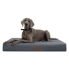 CARLOS Ortho-Medic Orthopädische Hundematte Velours-Kunstleder VISCO Hundebett Die Hundematte CARLOS ist 6 cm hoch und besonders für große und schwere Hunde geeignet, die aufgrund einer Erkrankung (Arthrose, HD, DE oder ähnliches) einen orthopädischen Hundeschlafplatz benötigen. Für gesunde und/oder übergewichtige Hunde dient die Matte zur Prophylaxe, um derartigen Erkrankungen vorzubeugen. Aber auch kleinere Hunde finden hier einen entspannten und erholsamen Ruheplatz. Ein wertvolles und pflegeleichtes Kunstleder umgibt die Matratze. Absolute Premium-Klasse! VISCO – Diese humanmedizinisch bewährte Materialwahl lässt aufliegende Druckpunkte quasi schweben und fördert die maximale Durchblutung in jeder Lage. Die Serie besteht aus 4 Größen (M 80cm, L 100cm, XL 120cm und Übergroße XXL 150cm) und 5 klassischen Farben (braun, graphit, schwarz, bordeaux, creme). Pflegehinweis Bitte den Bezug nur mit geschlossenen Reißverschlüssen waschen! Waschen mit Feinwaschmittel ohne Weichspüler per Handwäsche bei max. 30°C Nach dem Waschen sanft in Form ziehen und die Reißverschlüsse immer vorsichtig öffnen und schließen! Nicht trocknergeeignet, nicht bügeln, nicht chloren, nicht bleichen. Kunstleder zur Reinigung nass abwischen, waschen ist nicht nötig. Versandhinweis Das Produkt wird für den Transport platzsparend zusammengerollt und sehr eng in einem Karton verpackt. Bitte legen Sie die das Hundebett nach dem Auspacken mindestens 12 – 24 Stunden bei Raumtemperatur aus. So gewährleisten Sie, dass sich die Schaum-Silikonflocken und die anderen Materialien aklimatisieren und danach auch wie gewünscht liegen.