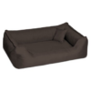 Hundebett DONALD VISCO aus pflegeleichtem Polyester – Oxford 210D. Reiche Farbpalette in orthopädischer Qualität.. Polyester-Bezug 210D – langlebig, haar- und super pflegeleicht. VViereckiges Design mit umlaufenden Rand – die beliebteste Formgebung. Stabiler, anschmiegsamer Kuschelrand dank fester Schaumflockenfüllung. Orthopädische Matratze 5/7 cm in orthopädischer Qualität – mit Visco-Teil. Atmungsaktives Unterseiten-Spannvlies – kontinuierliche Belüftung. Auch in Kunstleder auf Anfrage erhältlich. Achtung! Das Bett fällt klein aus! Bitte beachten Sie die Innenmaße! Die rechteckige Formgebung des Hundebettes DONALD übermittelt eine klare Linie, passt sich dank seiner reichen Farbpalette jedem Wohnambiente an und ist für kleine bis übergroße Hunderassen entwickelt. Die rechteckige Formgebung ist für Hunde perfekt, die gerne auf der Seite liegen und sich zum Schlafen auch gerne lang ausstrecken. Die Hundematratze wird aus einer unteren Lage PUR-Schaum und einer mittleren Lage Formgedächtnisschaum VISCO (Memory Foam) hergestellt. Der Bezug aus Polyester 210D besitzt durch die Struktur eine schlichte Erscheinung. Dieser pflgeleichte Stoff ist zudem bekannt für seine Belastbarkeit. Der abgesenkte Eingang ermöglicht auch älteren Hunden einen einfachen Eintritt in das Hundebett. Die Serie besteht aus 5 Größen (S 70cm, M 80cm, L 100cm, XL 120cm und Übergroße XXL 150cm) und 30 tollen Farben. Pflegehinweis Bitte den Bezug nur mit geschlossenen Reißverschlüssen waschen! Waschen mit Feinwaschmittel ohne Weichspüler per Handwäsche oder im Schonwaschgang bei max. 30°C. Bei Maschinenwäsche ein Wäschenetz verwenden Kunstleder zur Reinigung nass abwischen, waschen ist nicht nötig. Nach dem Waschen sanft in Form ziehen und die Reißverschlüsse immer vorsichtig öffnen und schließen! Nicht trocknergeeignet, nicht bügeln, nicht chloren, nicht bleichen. Versandhinweis Das Produkt wird für den Transport platzsparend zusammengerollt und sehr eng in einem Karton verpackt. Bitte legen Sie die das Hundebett nach dem Auspacken mindestens 12 – 24 Stunden bei Raumtemperatur aus. So gewährleisten Sie, dass sich die Schaum-Silikonflocken und die anderen Materialien aklimatisieren und danach auch wie gewünscht liegen.