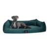 tierlando® Orthopädisches Hundebett FRANKLIN Hundesofa Kuscheliger Teddy-Stoff Das orthopädische Luxus Hundebett FRANKLIN wurde mit ultraweichem und samtigen Teddystoff bezogen. Dieser feine Bezugsstoff punktet nicht nur mit seiner kuschelig flauschigen Haptik, sondern auch durch seine zart schimmernde Optik. Abnehmbar und waschbar bleibt er zudem lange hygienisch sauber. FRANKLIN sorgt aber nicht nur für mehr Ästhetik in Ihrem Zuhause, sondern kann auch mit seiner Funktionalität trumpfen. Der abgesenkte Eingang ermöglicht einen leichteren Einstieg in das Hundebett, welches dank seiner rechteckigen Form viel Platz bietet. So hat Ihr Hund die Möglichkeit sich lang auszustrecken und auf der Seite liegen zu können. Die orthopädische Matratze ist außerdem herausnehmbar und damit perfekt für Reisen mit dem Auto geeignet. Pflegehinweis Bitte den Bezug nur mit geschlossenen Reißverschlüssen waschen! Waschen mit Feinwaschmittel ohne Weichspüler per Handwäsche oder im Schonwaschgang bei max. 30°C. Bei Maschinenwäsche ein Wäschenetz verwenden Kunstleder zur Reinigung nass abwischen, waschen ist nicht nötig. Nach dem Waschen sanft in Form ziehen und die Reißverschlüsse immer vorsichtig öffnen und schließen! Nicht trocknergeeignet, nicht bügeln, nicht chloren, nicht bleichen. Versandhinweis Das Produkt wird für den Transport platzsparend zusammengerollt und sehr eng in einem Karton verpackt. Bitte legen Sie die das Hundebett nach dem Auspacken mindestens 12 – 24 Stunden bei Raumtemperatur aus. So gewährleisten Sie, dass sich die Schaum-Silikonflocken und die anderen Materialien aklimatisieren und danach auch wie gewünscht liegen.