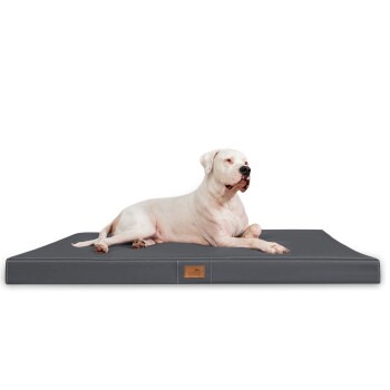 OSCAR EASY CLEAN Orthopädische Hundematratze OSCAR 11 cm mit Visco-Matratze in Anti-Haar Kunstleder mit Memory Foam. Maximale orthopädische Visco Qualität – Entlastung für Wirbelsäule und Gelenke. Einzelkomponenten – Komfort-Schaum (7cm) , Visco (3cm) und Wattierung (1cm) Hochwertiger mit Deko-Nähten verziehrter Bezug aus Kunstleder– edel und pflegeleicht. Moderne, klare Linie – kühne Designsprache in jedem Wohnkonzept. tierlando® Premium-Klasse – Höchstmaß an Komfort und Alltagstauglichkeit. Unterseite – atmungsaktives Spannvlies mit Anti-Rutsch-Stoppern. Die Hundematratze Oscar ist 11 cm hoch und somit besonders für große und schwere Hunde geeignet, die aufgrund einer Erkrankung (Arthrose, HD, DE oder ähnliches) einen orthopädischen Hundeschlafplatz benötigen. Für gesunde und/oder übergewichtige Hunde dient die Matratze zur Prophylaxe, um derartigen Erkrankungen vorzubeugen. Aber auch kleinere Hunde finden hier einen entspannten und erholsamen Ruheplatz. Ein wertvolles und pflegeleichtes Kunstleder umgibt die Matratze. Absolute Premium-Klasse! VISCO – Diese humanmedizinisch bewährte Materialwahl lässt aufliegende Druckpunkte quasi schweben und fördert die maximale Durchblutung in jeder Lage. Die Die Serie besteht aus 3 Größen (L 100cm, XL 120cm und Übergroße XXL 150cm) und 5 klassischen Farben (braun, graphit, schwarz, bordeaux, creme). Pflegehinweis Bitte den Bezug nur mit geschlossenen Reißverschlüssen waschen! Waschen mit Feinwaschmittel ohne Weichspüler per Handwäsche bei max. 30°C Nach dem Waschen sanft in Form ziehen und die Reißverschlüsse immer vorsichtig öffnen und schließen! Nicht trocknergeeignet, nicht bügeln, nicht chloren, nicht bleichen. Kunstleder zur Reinigung nass abwischen, waschen ist nicht nötig. Versandhinweis Das Produkt wird für den Transport platzsparend zusammengerollt und sehr eng in einem Karton verpackt. Bitte legen Sie die das Hundebett nach dem Auspacken mindestens 12 – 24 Stunden bei Raumtemperatur aus. So gewährleisten Sie, dass sich die Schaum-Silikonflocken und die anderen Materialien aklimatisieren und danach auch wie gewünscht liegen.
