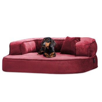 Tierlando ® SHARLEEN VISCO PLUS – Orthopädisches Hundesofa mit kuscheligem Teddystoff bordeaux 80 cm, 30 cm, 60 cm