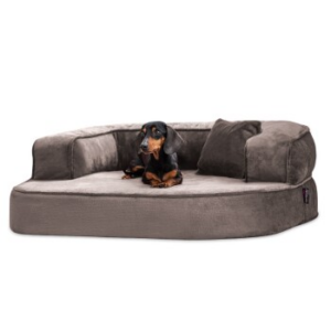 Tierlando ® SHARLEEN VISCO PLUS – Orthopädisches Hundesofa mit kuscheligem Teddystoff graphit/nature 80 cm, 30 cm, 60 cm