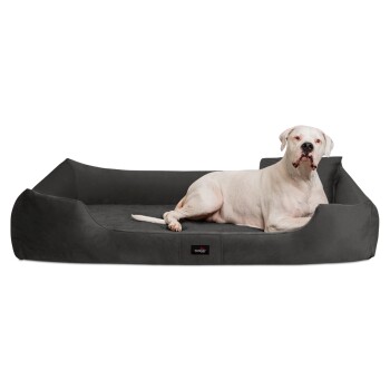 tierlando® Orthopädisches Hundebett VINCENT High-Tech-Velours (Triton) und Cord Die Stoff-Kombination aus High-Tech-Velours Triton und Breit-Cord wird höchsten Qualitätsansprüchen gerecht: Die DIRT-LIQUID-PROTECT-Technologie des Velours mit reduzierter Schmutzaufnahme und die grob gerippte Struktur des Cord-Stoffes zeichnen unser Hundebett VINCENT aus. Es ist widerstandsfähig und samtig weich. Die orthopädische Hundematratze setzt sich aus einer Lage PUR-Schaum, einer Lage Formgedächtnisschaum VISCO Memory Foam und einer weichen Watte-Schicht zusammen. Die beliebte rechteckige Formgebung ist für Hunde perfekt, welche gern auf der Seite liegen und sich zum Schlafen auch gern lang ausstrecken. Der abgesenkte Eingang ermöglicht auch älteren Hunden einen einfachen Einstieg in das Hundebett. Pflegehinweis Bitte den Bezug nur mit geschlossenen Reißverschlüssen waschen! Waschen mit Feinwaschmittel ohne Weichspüler per Handwäsche oder im Schonwaschgang bei max. 30°C. Bei Maschinenwäsche ein Wäschenetz verwenden Kunstleder zur Reinigung nass abwischen, waschen ist nicht nötig. Nach dem Waschen sanft in Form ziehen und die Reißverschlüsse immer vorsichtig öffnen und schließen! Nicht trocknergeeignet, nicht bügeln, nicht chloren, nicht bleichen. Versandhinweis Das Produkt wird für den Transport platzsparend zusammengerollt und sehr eng in einem Karton verpackt. Bitte legen Sie die das Hundebett nach dem Auspacken mindestens 12 – 24 Stunden bei Raumtemperatur aus. So gewährleisten Sie, dass sich die Schaum-Silikonflocken und die anderen Materialien aklimatisieren und danach auch wie gewünscht liegen.