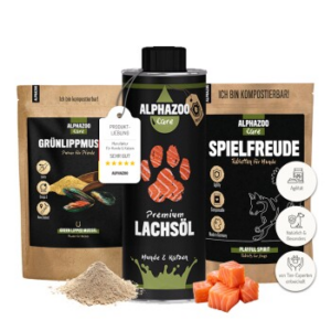 Gelenke Kombi – Unterstützung für aktive HundeDas Gelenke Kombi-Set ist speziell zusammengestellt, um die Bewegungsfreude und Aktivität deines Hundes zu unterstützen. Es besteht aus Grünlippmuschelpulver (100 g), Spielfreude Tabletten (75 g) und Lachsöl (250 ml) – einer optimal abgestimmten Kombination zur Ergänzung der täglichen Ernährung.Das Grünlippmuschelpulver enthält natürliche Glucosamine und Omega-3-Fettsäuren, die sich in der Fütterung bewährt haben. Die Spielfreude Tabletten sind eine praktische Ergänzung, die wertvolle Inhaltsstoffe liefert, um deinen Hund in Bewegung zu halten. Das hochwertige Lachsöl, reich an Omega-3-Fettsäuren, rundet das Set ab und unterstützt eine ausgewogene Ernährung.Ob für sportliche Hunde im Agility-Training oder einfach zur Förderung der täglichen Bewegungsfreude – das Gelenke Kombi-Set ist die ideale Wahl, um deinem Hund mit natürlichen Inhaltsstoffen etwas Gutes zu tun.