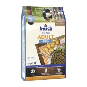 bosch Adult mit Fisch & Kartoffel enthält neben Geflügelfleisch als wichtigen Eiweißlieferanten hochwertigen Fisch und wird unter der Verwendung von Kartoffelmehl als hochverdauliche Kohlenhydratquelle ohne Weizen hergestellt. Die Energie- & Proteinkonzentration ist so gewählt, dass in Verbindung mit den enthaltenen Muschelextrakten den Risiken von Übergewicht für Knochen und Gelenke vorgebeugt wird. Durch den Einsatz unseres Immun-Komplexes aus Mannanen & Glucanen wird die Darmflora stabilisiert sowie das Immunsystem gestärk