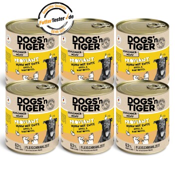 Proviant enthält leckeres Huhn mit zarter Ente, knackigem Apfel und Kartoffel Unser Schlemmermenü PROVIANT vereint köstliche Zutaten und hochwertige Inhaltsstoffe, um selbst den wählerischsten Doggo zu verwöhnen. Entdecke das Beste aus der Natur, verpackt in einer vollwertigen Fleischmahlzeit, die nicht nur lecker ist, sondern auch höchsten Ansprüchen an Verträglichkeit und Qualität gerecht wird. Ein extra hoher Fleischanteil mit 53% Huhn und 10% Ente kombiniert mit leckerer Fleischbrühe machen das Menü super saftig. Die Kombination aus hochwertigem Fleisch, wertvollem Innereien und viel frischem Gemüse und Obst verfeinert mit aromatischen Kräutern deckt die natürlichen Bedürfnisse Deines Hundes optimal ab. Die Zugabe von Leinöl, Bierhefe, Eierschalenpulver und weiteren hochwertigen Zutaten steuert wichtige Vitamine, Mineralstoffe und Spurenelemente bei. Eine köstliche Kombination aus Geschmack und Wohlbefinden – das sind unsere Schlemmermenüs Alleinfuttermittel für Hunde mit in Deutschland zubereitet