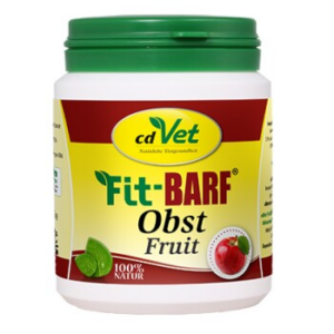 Zur Ergänzung der Tagesration mit Obst, Pulver Fit-BARF Obst wird aus erlesenen Zutaten hergestellt, um eine ausgeglichene Ernährung bei der Fütterung besser zu ermöglichen. Es ergänzt den Bedarf an Vitaminen (Niacin, Riboflavin (B2), Folsäure, E, A, K, C), Flavonoiden (Polyphenole), sowie Ballaststoffen. Fit-BARF Obst ist getreidefrei und eine gesunde Alternative zum Gemüse. Es bringt nicht nur Abwechslung, sondern auch Ausgeglichenheit in den BARF-Futterplan. In Kombination mit Fit-BARF MicroMineral ist somit die Basis für gesundes Barfen gelegt.