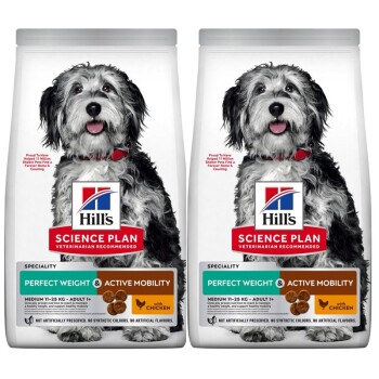 Ihren ausgewachsenen Hund auf eine Diät mit begrenzter Kalorienzufuhr zu setzen, kann ein schwieriges Unterfangen für Sie und Ihren Vierbeiner sein. Darum liefert Hill’s Science Plan Perfect Weight & Active Mobility Adult Medium Hundefutter mit Huhn eine köstliche, bahnbrechende Ernährung zum Gewichtsmanagement, die Ihrem ausgewachsenen Hund vollen Genuss bietet. Mit Protein zur Erhaltung der schlanken Muskeln und klinisch erprobtem Fischöl, das reich an Omega-3-Fettsäuren ist, um die Beweglichkeit der Gelenke zu unterstützen, ist dieses Hundefutter zur Gewichtsregulierung die perfekte Mahlzeit im Napf Ihres erwachsenen Hundes. Dieses Hundefutter für ein gesundes Gewicht wurde mithilfe jahrzehntelanger modernster Forschung entwickelt und liefert Ihrem ausgewachsenen Hund hervorragend schmeckende Mahlzeiten, die er voll und ganz genießen kann.
