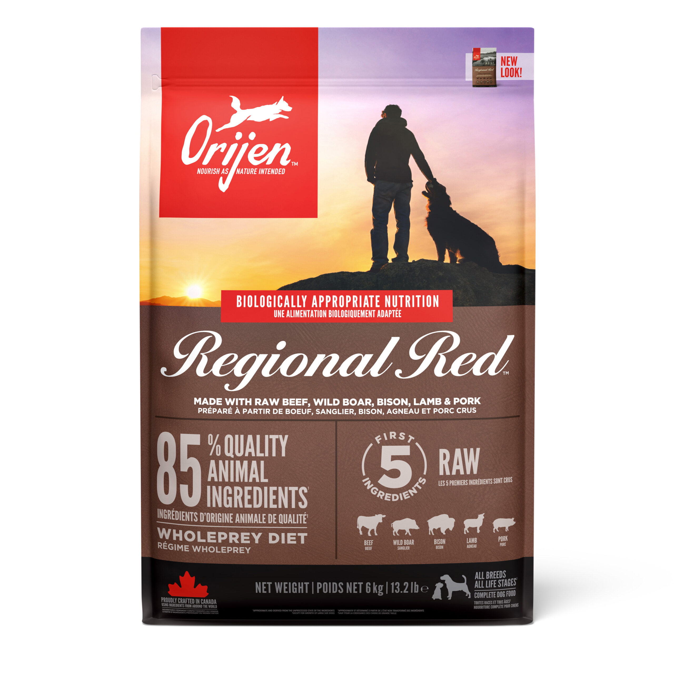 Achten Sie bei einem Hundefutter auf eine artgerechte Zusammensetzung mit den besten Inhaltsstoffen aus der Natur. Das Orijen Regional Red ist voller proteingeladener Fleischzutaten und sorgt mit seiner niedrig glykämischen Rezeptur sowie dem geringen Kohlehydratanteil für einen ausgeglichenen Blutzuckerspiegel und eine bestmögliche Kondition bei ausgewachsenen Hunden. Mit einer Vielfalt an rotem Fleisch wie Angus-Rind, Wildschwein, Büffel, Lamm sowie Schwein nach dem „Ganze-Beute“-Prinzip. Aus Kanadas besten und frischesten Zutaten hergestellt, hält das Futter deinen Hund glücklich und vital. Alle Zutaten stammen von regionalen, kanadischen Farmen, sind für den menschlichen Verzehr zugelassen und werden täglich frisch in die Orijen-Produktionsstätten geliefert.