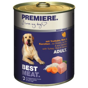 PREMIERE Best Meat ist ein Alleinfuttermittel für ausgewachsene Hunde, dessen hochwertige Zutaten und schonende Verarbeitung eine ausgezeichnete Verträglichkeit garantieren. Darüber hinaus ist PREMIERE Best Meat ohne Proteinersatzstoffe wie z.B. Soja, ohne künstliche Farb- und Lockstoffe, ohne künstliche Aromen und ohne Konservierungsstoffe hergestellt. Die Vorteile im Überblick: hoher Anteil an Fleisch und Innereien: 70% 100% Frischfleisch ohne Formfleisch und Knochenmehl ohne Konservierungsmittel ohne Farb- und Geschmacksstoffe ohne Proteinersatzstoffe, wie Soja ohne Zusatz von Zucker und Salz *Schmeckt nicht? Mit unserer Akzeptanzgarantie bekommst du dein Geld zurück und suchst dir einfach ein anderes Futter aus.