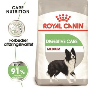 Verdauungsbeschwerden sind wirklich unangenehm, auch für Ihren Hund. Abgesehen davon, dass sich Ihr Hund wohler fühlt, bedeutet ein gesunder Darmtrakt, dass Ihr Hund einen möglichst großen Anteil der Nährstoffe aufnimmt, die er mit dem Futter zu sich nimmt. Dies trägt wesentlich zum Wohlbefinden Ihres Hundes bei. Royal Canin Digestive Care Medium ist geeignet für Hunde zwischen 11 und 25 kg und ist speziell für Hunde entwickelt, die zu Verdauungsproblemen neigen. Wie unterstützt Royal Canin Digestive Care die Verdauung? Die mit Aktivnährstoffen versehene Rezeptur enthält eine Reihe an Präbiotika, die zu einer gesunden Darmflora beitragen können. Präbiotika sind Nährstoffe, welche die natürlichen “guten” Darmbakterien im Verdauungstrakt Ihres Hundes ernähren. Diese Bakterien spielen eine wichtige Rolle für die Gesundheit im Allgemeinen und die Darmgesundheit im Speziellen. Einen weiteren wichtigen Beitrag zur Darmgesundheit von Hunden leisten die gewählten Proteinquellen. Deswegen verwendet Royal Canin ausschließlich die hochwertigsten Proteine und passt die Wahl an die exakten Bedürfnisse Ihres Hundes an. Diese gute Verdaulichkeit wird regelmäßig durch umfassende Qualitätsprüfungen sichergestellt. Darüber hinaus sind in Royal Canin Digestive Care Medium lösliche und unlösliche Nahrungsfasern in einer ausgewogenen Mischung für eine optimale Verdauung enthalten. Mischfütterung mit Royal Canin Digestive Care: Unser Digestive Care-Ernährungsprogramm ist in zwei Varianten erhältlich: als knuspriges Trockenfutter und als schmackhaftes Nassfutter im Frischebeutel. Beide Varianten sind als Alleinnahrung geeignet und können aber auch perfekt miteinander kombiniert werden. Sie können beispielsweise das Nassfutter als Beilage zum Trockenfutter anbieten. Wir geben Ihnen nicht nur unser Wort: In internen Studien von Royal Canin kam es in 91% der Fälle nach der Fütterung von Digestive Care Medium nachgewiesenermaßen zu einer Verbesserung der Stuhlqualität – ein deutlicher Hinweis auf einen gesunden Darm. Royal Canin Digestive Care Medium trägt somit nachgewiesenermaßen erfolgreich zur Entwicklung einer guten Stuhlqualität bei. Ihre Vorteile im Überblick: Ideal bei empfindlicher Verdauung Mit leicht verdaulichen L.I.P.-Proteinen Erhaltung eines gesunden Verdauungssystems Verbesserung der Stuhlqualität Höchste Akzeptanz