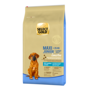 SELECT GOLD Sensitive Maxi Junior Insect ist eine speziell entwickelte, ausgewogene Premium-Trockennahrung für Welpen und Junghunde vom Absetzen bis zum ca. 15. Lebensmonat sowie für tragende und säugende Hündinnen großer Rassen (Endgewicht ab 25kg). Diese qualitativ hochwertige Trockennahrung enthält gut bekömmliche Zutaten und eignet sich daher besonders für ernährungssensible Hunde sowie bei Futtermittelunverträglichkeiten. Bei der Entwicklung dieser Premium-Rezeptur wurden die ernährungsphysiologischen Anforderungen von Welpen und Junghunden im Wachstum gezielt berücksichtigt. – Glucosamin und Chondroitinsulfat als essentielle Bausteine für Knorpel und Gelenke.- Eine optimale Verdauungstätigkeit kann durch den Einsatz von Anis, Kümmel und Leinsaat begünstigt werden. Yucca schidigera kann zusätzlich unangenehmen Kotgeruch reduzieren.- Flohsamenschalen und prebiotisches Inulin können den Aufbau und Erhalt einer stabilen Darmflora unterstützen.- Ohne Zusatz von Zucker und Soja.- Krokettengröße speziell abgestimmt auf den Kiefer großer Rassen (> 25kg).- Entwickelt mit Unterstützung von Tierärzten