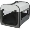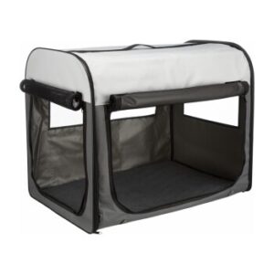 Die Transporthütte aus strapazierfähigem Nylon hat eine Tür die mit einem Reißverschluss komplett verschließbar ist. Abdeckbare Netz-Einsätze zum Schutz des Tieres sorgen für eine gute Luftzirkulation. Die mit Fleece gefütterte Bodenplatte verfügt über einen Nylon-Bezug. Mithilfe von Schlaufen und Heringen kann die Hütte am Boden sicher fixiert werden. Sie lässt sich schnell auf- und zusammenklappen und wird zum Reinigen einfach ausgewischt. Die Lieferung der faltbaren Hundebox erfolgt in praktischer Nylontasche. Hinweis: Größe M & M-L können zusätzlich seitlich mit einem Reißverschluss geöffnet werden.