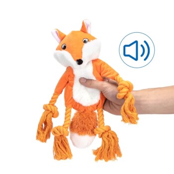 Das nobleza Plüsch-Hundespielzeug in Fuchs-Optik ist der ideale Begleiter für Hunde, die gerne kuscheln, spielen und kauen. Hergestellt aus hochwertigem, superweichem Plüsch bietet es eine angenehme Haptik und ist vollständig gefüllt für extra Volumen. Das realistische Design mit lebendigen Farben weckt die Neugier des Hundes und sorgt für langanhaltende Spielfreude.Ein integrierter Quietscher erzeugt spannende Geräusche beim Kauen, was den Spieltrieb anregt und für zusätzlichen Spaß sorgt. Das eingearbeitete Baumwollseil macht das Spielzeug besonders robust und eignet sich perfekt für Zerrspiele sowie zur Unterstützung der Zahnpflege.Dank der hochwertigen Verarbeitung und stabilen Materialien hält das Spielzeug auch intensiver Nutzung stand. Es ist eine tolle Möglichkeit, um Langeweile und Stress bei Hunden zu reduzieren und gleichzeitig für spielerische Beschäftigung zu sorgen. Ein vielseitiges Spielzeug, das sowohl zum interaktiven Spielen als auch zum Kuscheln genutzt werden kann!