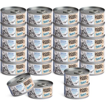 Unser Meer! – das haben Tiger zum Fressen gern.Für flauschige Fischliebhaber ist unser „Meer!“ Döschen ideal. Leckere Filetstückchen vom Thunfisch und vom Lachs machen die Mahlzeit zu einem maritimen Erlebnis, das deine Katze so schnell nicht vergisst. Wir haben uns für feine Filetstücke entschieden, denn für unsere Vierbeiner ist eben nur das Beste gerade gut genug.Kein Zucker, kein Getreide und keine künstlichen Aroma-, Farb- und Konservierungsstoffe – das ist unser Credo. In purem Futter sollte nichts sein, was da nicht hingehört! Deshalb bleiben unsere Inhaltsstoffe naturidentisch.Die Packung ist perfekt dosiert für eine leckere Mahlzeit.