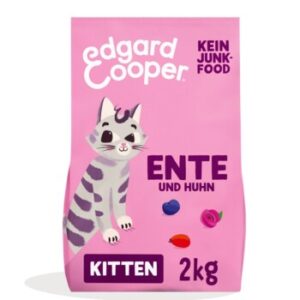 Ein vollwertiges Rezept – kein Junkfood – mit Freilauf-Ente und Freiland-Huhn: Ideal für heranwachsende Kätzchen und auch kastrierte Kätzchen. Freue dich auf viel Schnurren, wenn du dein Kätzchen mit echtem Futter fütterst – nur aus frischem, leckerem Fleisch – nicht pulverisiert oder gemahlen.Dieses Futter ist vollgepackt mit Proteinen, die zur Erhaltung gesunder Muskeln beitragen, und zugesetzten Hefen, die das Immunsystem deines Kätzchens unterstützen. Außerdem ist es getreidefrei und leicht verdaulich, um dem Bäuchlein deines Kätzchens Gutes zu tun. All dies wird durch die Kraft der Kräuter und anderer Pflanzen von Mutter Natur – Blaubeeren, Rosenblüten und Hagebutten – noch leckerer gemacht. Und das ganz ohne künstlichen Quatsch. Es ist das ultimative Frischfleischfest. Wundere dich also nicht, wenn dein Kätzchen sich nach dem Knabbern unseres knusprigen Trockenfutters vor Freude das Schnäuzchen leckt und herumspringt. Mmh, zum Pfoten Abschlecken.