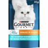 Eine zarte Versuchung, der Ihr kleiner Genießer garantiert nicht widerstehen kann. Unser Erfolgsrezept: Erlesene Streifen mit Fisch, Rind, Huhn oder weiteren hochwertigen Zutaten, die schonend gegart und in einer köstlichen Sauce serviert werden. Köstliche Rezepte, hergestellt aus qualitativ hochwertigen Zutaten – ganz ohne Zusatz künstlicher Farbstoffe, Konservierungsstoffe oder Aromen. Wenn Ihre Katze entscheiden dürfte, würde jede Mahlzeit aus Sauce, Sauce und noch mehr Sauce bestehen? Dann ist GOURMET Perle Genuss in Sauce genau das Richtige für Ihren kleinen Saucenliebhaber: Jedes Rezept vereint eine überraschend große Portion köstlicher Sauce mit erlesenen, zarten Streifen mit Huhn, Rind oder Fisch. Die Vorteile im Überblick: Aus hochwertigen Zutaten hergestellt Unvergleichliche Rezeptur Verwöhnt auch anspruchsvolle Katzen In vielen delikaten Geschmacksrichtungen Aus den praktischen Frischebeuteln immer frisch servierbar