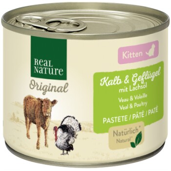 REAL NATURE Original Nassfutter Katze, Kitten, Kalb und Geflügel mit Lachsöl 6×200 g