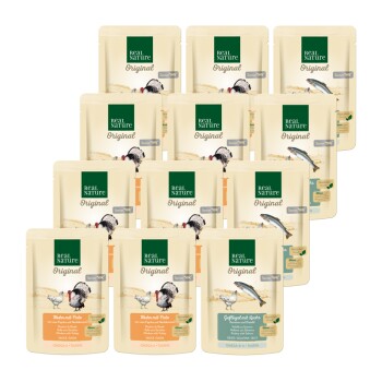 Die hochqualitative Vollnahrung enthält ein, zwei oder maximal drei verschiedene tierische Proteinquellen, hochwertigste pflanzliche Komponenten wie Kartoffeln oder Vollkornnudeln und wertvolle Öle, deren essenzielle Omega-6-Fettsäuren zur Haut- und Fellgesundheit beitragen können. Kaltabfüllung: Die REAL NATURE Nassnahrung wird durch das Verfahren der Kaltabfüllung hergestellt. Das heißt: Die Zutaten werden kalt in die Dose abgefüllt und nur einmal erhitzt. Durch dieses einmalige Erhitzen bleiben die Nährstoffe der erlesenen Ingredienzien weitgehend erhalten. Diese REAL NATURE Kreation ist speziell auf die Bedürfnisse von älteren Katzen abgestimmt. Das REAL NATURE Classic Senior Mixpaket beinhaltet folgende Sorten: 4x Geflügel mit Lachs, Karotten und Distelöl in Gelée 8x Huhn mit Pute, roter Paprika und Nachtkerzenöl in Sauce Die Vorteile im Überblick: 100% natürlich1 besonders schonende Verarbeitung (Kaltabfüllung), um Qualität, Geschmack und Nährstoffe bestmöglich zu erhalten ausgewogene Rezepturen mit wertvollem Öl wir verwenden ausschließlich Muskelfleisch, keine Innereien, keine Tier- und Knochenmehle das verwendete Fleisch stammt von Tieren, die für den menschlichen Verzehr freigegeben sind keine künstlichen Zusatz- & Konservierungsmittel ehrliche Deklaration: was drin ist, steht auch drauf 1 in den eingesetzen Rohstoffen *Schmeckt nicht? Mit unserer Akzeptanzgarantie bekommst du dein Geld zurück und suchst dir einfach ein anderes Futter aus.