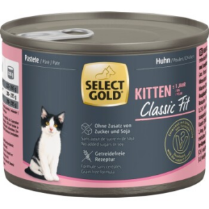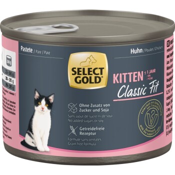 Die Rezepturen zeichnen sich durch hochwertige und funktionale Zutaten aus und sind auf verschiedene Lebensphasen und besondere Bedürfnisse abgestimmt. SELECT GOLD Kitten Huhn eignet sich durch die spezielle Zusammensetzung ideal für Kitten und Jungkatzen vom Absetzen bis zum ca. 12. Lebensmonat und versorgt kleine Kätzchen während der wichtigen Wachstumsphase optimal. Die Vorteile im Überblick: Prebiotisch wirkende Fructo-Oligosaccharide fördern den Aufbau und Erhalt einer stabilen Darmflora. Natürliche Omega-3- und Omega-6-Fettsäuren aus Lachs- und Distelöl sowie Biotin können zu intakter Haut und schönem Fell beitragen. Enthält Vitamin E, Selen und optimiert durch Vitamin C die körpereigenen Abwehrkräfte. Ein erhöhter Gehalt an Vitamin D3 sowie Calcium und Phosphor im richtigen Verhältnis sorgen für eine korrekte Entwicklung von Knochen und Zähnen. Die bedarfsgerechte Nährstoffversorgung begünstigt ein ausgewogenes und gleichmäßiges Wachstum. Der angepasste Proteingehalt unterstützt in der Wachstumsphase den optimalen Muskelaufbau. Getreide- und Glutenfrei. *Schmeckt nicht? Mit unserer Akzeptanzgarantie bekommst du dein Geld zurück und suchst dir einfach ein anderes Futter aus.