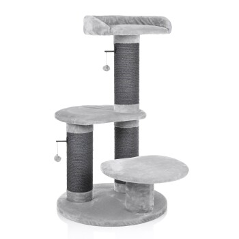 Viel Platz für Spiel, Klettern und Entspannung Katzen lieben es, zu klettern, zu spielen und ihre Umgebung zu beobachten. Die drei extra großen Plattformen bieten ausreichend Raum, um diesen Bedürfnissen gerecht zu werden. Gleichzeitig dienen sie als gemütliche Schlafplätze, die Ihre Samtpfoten zu ausgedehnten Ruhepausen einladen. Der Kratzbaum Kanata ist vielseitig und erfüllt alle Wünsche Ihrer Katze – von Bewegung bis Entspannung. Stabil und stilvoll Die große Bodenplatte sorgt für maximale Stabilität, selbst wenn Ihre Katzen wilder spielen. Das moderne, aber natürliche Design in eleganter Farbkombination aus Anthrazit und Grau passt perfekt in jedes Zuhause. Mit praktischen Accessoires wie der Spielangel und einer bequemen Liegefläche bietet der Kratzbaum sowohl Abwechslung als auch Rückzugsmöglichkeiten. Optimale Krallenpflege und Schutz für Ihre Möbel An den besonders stabilen Sisalsäulen mit einem Durchmesser von 15 cm kann Ihre Katze ihren natürlichen Kratztrieb voll ausleben. So bleibt Ihre Einrichtung – Tapeten, Teppiche und Vorhänge – vor Kratzspuren verschont. Produktdetails: Maße: 110 x 80 x 138 cm Bodenplatte: ca. 80 x 4 cm Gesamtbreite: ca. 110 cm Gesamthöhe: ca. 138 cm Durchmesser der Sisalsäulen: 20 cm Liegefläche oben: ca. 56 x 48 cm
