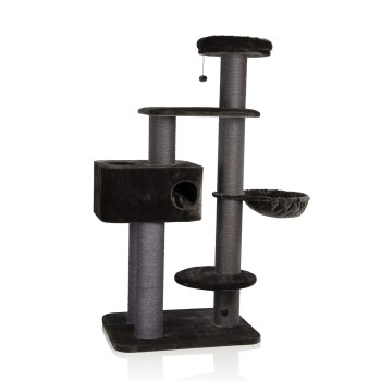 Der Kratzbaum Maine Coon 217 eignet sich hervorragend für einen Mehrkatzenhaushalt und bietet auch großen und schweren Fellnasen genügend Auswahl zum Klettern, Toben, Krallenwetzen, Liegen und Dösen! Abwechslungsreiche und extra große Schlafplätze laden Ihre Samtpfoten zu ausgiebigen Ruhepausen ein! Prima spielen, verstecken, aber auch sich zurückziehen und schlummern lässt es sich dabei im kuscheligen Häuschen mit samtweichem Kissen, welches bei Verschmutzung unkompliziert und schnell gereinigt werden kann. Das Häuschen hat eine Größe von ca. 68 x 55 x 35,5 cm und besitzt einen Eingang an der Seite des Häuschens, sowie eins auf dem Dach des Häuschens. Das Dach dient dabei gleichzeitig als eine großzügige weitere Liegefläche. Die vielen Plattformen bieten ausreichend viele Kratz- und Liegemöglichkeiten auf jeder Etage. Den Abschluss bildet das turmhohe, riesige und gemütliche Liegebett mit mit einem Durchmesser von ca. 53 cm und erhöhtem Rand mit 12 cm Höhe. Von dort aus hat Ihre Samtpfote alles im Blick und kann hervorragend sein Revier beobachten. Eine weitere Liegemulde mit Ø 48 cm bietet dabei eine weitere Kuschelmöglichkeit. Zwei hängende Spielbällchen zum fangen sorgen zusätzlich für reichlich Spaß. Diese Kratzbaum-Serie ist durch die vielen unterschiedlichen und abwechslungsreichen Liege- und Kratzmöglichkeiten ideal für einen Mehrkatzenhaushalt geeignet! Die schwere Bodenplatte sowie die vielen, miteinander verbundenen Ebenen verleihen dem Kratzbaum eine hohe Standfestigkeit. Hierdurch eignet er sich im Besonderen auch für besonders große und schwere Katzenrassen. Der Maine Coon 217 ist mit einem Gesamtgewicht von ca. 58kg und einer Höhe von ca. 217 cm die ultimative Luxusklasse aus der Kratzbaum-Kollektion der CanadianCat Company. Maße: Massive Bodenplatte ca. 100 x 76 x 4 cm Gesamtbreite ca. 100 cm Gesamthöhe ca. 217 cm Größe der Liegemulde: ca. Ø 48 cm Größe der Liegefläche: ca. Ø 53 x 12 cm Größe des Häuschens: ca. 68 x 55 x 35,5 cm Gewicht: ca. 58kg