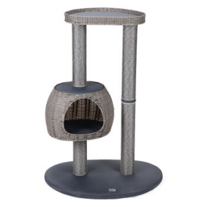 Der Karlie Kratzbaum Outdoor Nicky ist eine Kratzbaum- und Schlafplatzkombination, die nicht nur durch ihr trendiges Design besticht, sondern vor allem auch durch ihre funktionelle Ausführung. Die wetterfeste und pflegeleichte Materialverarbeitung von Polyrattan und Kunststoffsisal macht den Kratzbaum zum perfekten Outdoor-Möbelstück. Die textilen Elemente des Möbels sind ideal gegen äußere Einflüsse gewappnet. Schmutz und Feuchtigkeit können dem Kissen im Liegekorb nichts anhaben. Die spezielle Behandlung des Stoffes beeinträchtigt jedoch weder den weichen Griff des Textils noch den Liegekomfort für die Katze. Der Kratzbaum bietet der Katze mehrere Kratzmöglichkeiten für eine ausgiebige Krallenpflege, sowie einen erhöhten Liegeplatz zum Dösen und Beobachten. Eine Höhle dient als Rückzugsort für ein ungestörtes Nickerchen. Dank der doppelten Kratzsäule eignet sich das Möbel zudem ideal zum Klettern. Größe: 77x57x110 cm.