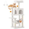 Um es zu platzieren brauchst du 170x60cm (ohne Treppen). Mit den vollständig nach außen gedrehten Hängematten (drehbar) ist sie 256 cm breit. (Siehe auch das Foto in allen Größen) Dieser Kratzbaum bietet viele Kratz-Optionen, um die Sisalstamme oder die mit Sisal bedeckten Spielhäuser zu erklimmen. In den Spielhäusern gibt es wunderbar weiche genähte Kissen, die herausnehmbar sind und Sie können sie auch in den Management-Sitzen oben finden. Hier sind sie mit Klettverschluss befestigt. Die Spielhäuser sind B70xD61xH51 und haben Ein- und Ausgänge an der Seite, vorne und oben. Die speziellen Hängematten an der Oberseite (Kombination aus einer Hängematte und einem Kissen) haben einen Durchmesser von 45 cm und werden bis zu einem Gewicht von 20 kg getestet. Aus extra dickem super weichem Plüsch. An der Spitze befinden sich zwei große Sitze Bord von B60xD43xH15cm mit einem herausnehmbaren Kissen gedreht werden, die auf Klettverschluss und einem sehr großen Anlegeplatz 70x60cm befestigt ist. In Qualität und Haltbarkeit liegt er auf hohem Niveau: – Sisal stamme sind 15cm und der 6mm dicke Naturalisal ist an den Pfosten geklebt. (Wenn deine Katze kratzen das Sisal nicht herunterrollt). – Extra dicker super weicher Plüsch mit einer Dicke von 600gr / m2 wurde verwendet (normalerweise etwa 280gr). Es ist auch sehr wichtig, dass der Plüsch an alle Teile geklebt wird, was ihn extra stark macht. – Die herausnehmbaren Kissen sind genäht und bleiben somit länger schön. – Dieser Kratzbaum ist mehr als 100KG insgesamt und mega robust. Fallen oder sich bewegen, weil deine Katzen spielen, ist unvorstellbar. Platzierungsgröße: Erforderliches Minimum: 170x60cm (ohne Stufen und mit nach innen gedrehten Hängematten). Maximal benötigt: 256x75cm (mit Treppe montiert und die Hängematten bis zum Maximum nach außen gedreht) Bodenplatten: 70x60cm und 4cm dick (2x) Höhe: 191 cm Gewicht: 100kg + Sisalstamme: 15cm Durchmesser mit Sisal an den Pfosten geklebt. (Insgesamt 20 Sisalstamme 15cmØ) Spielhäuser: 70x61x51cm mit abnehmbarem Kissen (2x). Außen mit Sisalabdeckung abgedeckt. Löcher vorne und seitlich 25x18cm oval. Hängematten: Drehbar und 45cm Liegefläche und getestet bis 20kg Traggewicht. Kombination so Hängematte und Kissen. Executive Sitze: 60x43x15cm mit abnehmbaren Kissen mit Klettverschluss (2x) Lounge-Bereich oben: 70x60cm