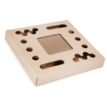 Ein besonderes Extra ist der integrierte Tunnel mit Holzkugeln, der um die Kratzfläche herum verläuft und den Spieltrieb der Katzen weiter anregt. Die Maße der Kratzpappe betragen 34 cm in der Länge, 34 cm in der Breite und 4 cm in der Höhe. CanadianCat kombiniert Funktionalität, Design und Qualität in einem langlebigen Produkt. Die stabile und hochwertige Verarbeitung sorgt für eine lange Lebensdauer der Kratzpappe. Dieses Kratzspielzeug bietet eine ideale Kratzmöglichkeit für Katzen und trägt dazu bei, die heimischen Möbel vor Kratzschäden zu schützen. Kratzen & Spielen: Ein Tunnel mit Holzkugeln animiert zum Fangen Karton-Rahmen: Verhindert das Verteilen des zerkratzten Kartons Katzenminze: Beigefügt im Beutel, aus polnischem Anbau Maße: 34 cm (Länge) x 34 cm (Breite) x 4 cm (Höhe) Schutz: Hilft, Möbel vor Kratzschäden zu bewahren