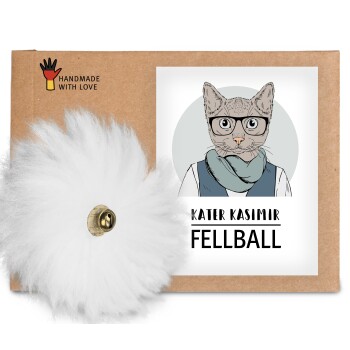 Premium Spielball für Katzen aus Naturkork mit echtem Schaffell und Glöckchen aus Europas letzter Glöckchenmanufaktur.Die hochwertigen Naturmaterialen der Katzenspielzeuge von KATER KASIMIR wecken in Deiner Katze sofort den Jagdtrieb. Die nachhaltigen Produkte sind kleinen Beutetieren wie Vögeln oder Mäusen nachempfunden. Sie bestehen aus tierischen Produkten wie Federn oder Fellen. Alle Artikel werden in Deutschland liebevoll von Hand hergestellt und bieten jungen Müttern bei einer fairen Bezahlung die Möglichkeit, in Heimarbeit Beruf und Familienleben mit einander zu vereinbaren. Kurze Transportwege sparen Treibstoff und schonen die Umwelt.