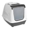 Die Vorteile im Überblick: besonders weit zu öffnende Klappe mit praktischem Tragegriff viel Bewegungsfreiheit aus äußerst hochwertigem, ungiftigem und recycelbarem Kunststoffmaterial leicht zu reinigen und sehr robust inklusive Streuschaufel und Aktivkohlefilter Vorteil der Nutzung von Aktivkohlefiltern: Durch eine große innere Oberfläche der Aktivkohle werden unangenehme Gerüche durch Geruchsabsorption einfach herausgefiltert. Den passenden Aktivkohlefilter zum einfachen Auswechseln finden Sie unter Zubehör. Tipps: Platzieren Sie die Katzentoilette an einem ruhigen Ort, aber nicht in der Nähe des Fress- oder Schlafplatzes. Füllen Sie die Katzentoilette ca. 6-8cm hoch mit Katzenstreu. Sollten Sie eine Fußbodenheizung besitzen, legen Sie isolierendes Material unter die Katzentoilette. Dadruch verhindern Sie Gerüche, die durch die Erwärmung entstehen können. Maße (LxBxH): ca. 57x44x41 cm Weitere Informationen erhalten Sie unter info@fressnapf.de **Bilder wurden teilweise mit KI generiert und können von der Realität abweichen.