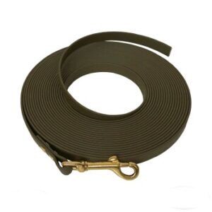 Biothane Schleppleine aus Beta Biothane für Hunde 15-25 kg ohne Handschlaufe 12 mm breit. Die Dicke des Materials beträgt 2.5 mm. Einfach zu reinigen – nur mit Wasser oder bei eingetrocknetem Schmutz mit einer Bürste. Kein Verblassen der Farben, es schimmelt nicht,nimmt keine Feuchtigkeit auf, es haften keine Bakterien daran. Das Material besteht aus einem inneren Polyestergewebe mit einem Überzug aus verschiedenen Kunststoffarten, der das Material dadurch noch haltbarer, wasserdichter und einfacher zu reinigen macht. Mit den Leinen von bio-leine GmbH aus Biothane erhalten sie extrem langlebige, einfach zu reinigende, rei√üfeste Produkte. Bei Hitze Kälte und Nässe gleicherma√üen flexibel.