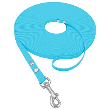 Biothane ganz leichte Schleppleine für Hundeminis und Welpen bis 8 Kg aus Beta Biothane mit Handschlaufe 9 mm breit. Die Dicke des Materials beträgt 1.5 mm. Einfach zu reinigen – nur mit Wasser oder bei eingetrocknetem Schmutz mit einer Bürste. Kein Verblassen der Farben, es schimmelt nicht,nimmt keine Feuchtigkeit auf, es haften keine Bakterien daran. Das Material besteht aus einem inneren Polyestergewebe mit einem Überzug aus verschiedenen Kunststoffarten, der das Material dadurch noch haltbarer, wasserdichter und einfacher zu reinigen macht. Mit den Leinen von bio-leine GmbH aus Biothane erhalten sie extrem langlebige, einfach zu reinigende, reißfeste Produkte. Bei Hitze Kälte und Nässe gleichermaßen flexibel.