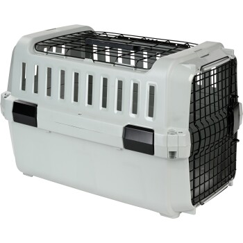 AniOne bietet für jede Gelegenheit das passende Zubehör. Die AniOne Transportbox Open Top ist das mobile Heim für deinen Vierbeiner – ideal für das Auto und auf Reisen. Zuhause kann die Box aus recycletem Material mit einem (separat erhältlichen) Einlegekissen in einen kuscheligen Rückzugsort verwandelt werden. Breite Gitterstäbe dienen für eine gute Sichtbarkeit und dein Tier fühlt sich nicht eingesperrt. Die Belüftungsschlitze sorgen für eine optimale Luftzirkulation im Inneren. Inkl. Tragegriff und zusätzlicher Öffnung oben. Die Metalltür mit praktischem Federverschluss kann mit einer Hand geöffnet und verriegelt werden, um ein ungewolltes Öffnen zu vermeiden. Extra hoher Eingang, sodass dein Liebling leicht rein- und raus laufen kann. Die Transportbox ist in verschiedenen Größen erhältlich: *Polypropylen (68% recycelt)