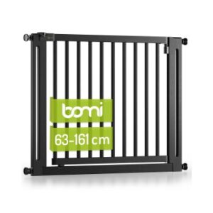 Ein Türschutzgitter bietet Haustierbesitzern die Möglichkeit, die Umgebung für ihre Tiere sicherer und besser kontrollierbar zu machen, während sie gleichzeitig den Bedürfnissen und Anforderungen des Haustiertrainings gerecht werden. Das BOMI „Miko“ Tierschutzgitter bietet Ihnen und Ihren pelzigen Familienmitgliedern maximale Sicherheit. Es ist nach DIN EN 1930:2012 geprüft und ein Tür- und Treppenschutzgitter, dem Sie vertrauen können & für Kinder, sowie für Haustiere in Deutschland zugelassen. Maße des Sicherheits-Gitters im Überblick: Auflagefläche der rutschfesten Klemmschrauben: 3,4 cm Verfügbare Größen: 63 bis 111 cm Gitterhöhe: 77 cm Abstand der Gitterstäbe: 6 cm Türbreite (Durchgang): 63-71 cm: 41 cm, 71-79 cm: 49 cm, 79-87 cm: 57 cm, 87-95 cm: 65 cm, 95-103 cm: 73 cm und ab 103-111 cm ist der Durchgang immer 81 cm Unser Angebot umfasst Türschutzgitter in einer Breite von 63-111 cm, um den Durchgang mit einem Türschutzgitter abzusperren (Bitte die richtige Größe auswählen!) . Wählen Sie aus verschiedenen Breiten, darunter 63-71 cm (Größe: XS) 71-79 cm (Größe: S) 79-87 cm (Größe: M) 87-95 cm (Größe: L) 95-103 cm (Größe: XL) 103-111 cm (Größe: XXL) um die ideale Breite für Ihr Gitter zu erreichen. Technische Daten zum Haustiergitter: Das BOMI „Miko“ Türschutzgitter für Hunde & Katzen bietet Ihnen Komfort und Sicherheit. Mit der komfortablen Einhandbedienung lässt es sich für Erwachsene schnell und einfach öffnen. Die Tür muss manuell geschlossen werden. Das Hundeschutzgitter öffnet immer in Laufrichtung. Mit dem 3-fachen Sicherheitsverschluss (2 x Türgriff, 1 x Türrahmen) gewährleisten wir die maximale Sicherheit Ihrer Haustiere. Zudem verfügt das Schutzgitter über eine 90° Feststell-Funktion, mit der die Tür bei Bedarf festgestellt werden kann, um den Durchgang offen zu halten. Die Vorteile unserer Marken-Schutzgitter im Überblick: Hochwertige Türschutzgitter aus Buchen Holz, speziell für Hunde und Katzen geeignet. Einfacher Klemmmechanismus für eine sichere Montage (kann alternativ auch verschraubt werden). Schutz Ihrer Wände vor Abnutzung: Im Lieferumfang sind hochwertige Wandschutz-Platten enthalten, um Wand & Türrahmen zusätzlichen Schutz zu bieten. Bombenfester Sitz: Unser Haustiergitter sitzt fest an Ort und Stelle, selbst wenn Ihr Haustier sich daran stellt. Treppenschutzgitter von exzellenter Qualität dank hochwertiger Materialien und exzellenter Verarbeitung. Lieferumfang: Treppengitter aus Metall, deutsche & bebilderte Anleitung, Zubehör für Bohren und Klemmen (4 x rutschfeste Klemmschrauben, 4 x Einstell-Schrauben, 4 x Wandhalterungen, 4 x Wandschutz-Platten, 4 x Senkkopfschrauben).