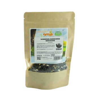 Damit unseren kleinen pelzigen Freunden nicht langweilig wird und sie nicht täglich ihr Futter nur in einer Schüssel serviert bekommen, sollte man als Abwechslung die Flocken ins Gehege legen oder gut verteilen. Dein Liebling wird wie in der Natur die Saaten mühevoll erarbeiten. Das ist nicht nur besonders artgerecht, sondern auch eine optimale Beschäftigung. Die Sonnenblumenkern Mischung werden in einem wiederverschließbaren Beutel geliefert, aus dem man auch nur kleine Mengen z.B. als Leckerlie entnehmen kann. Mit der Natur als Vorbild In dem natürlichen Lebensraum erarbeiten sich alle Nager ihr Futter selbst. Die Saaten müssen von diversen Gräsern, Rispen, Kolben und Ähren mühevoll erarbeitet oder eingesammelt werden, so auch die Sonnenblumenkern Mischung. Viele Tiere naschen die leckeren Saaten direkt vor Ort, andere sammeln sie komplett für ihren Bunker ein. Info: Die Sonnenblumen und Kardisamen werden direkt auf dem Feld mit einem Mähdrescher geerntet und im Trockenwagen mit bis zu 30°C Warmluft getrocknet. Fütterungsempfehlung: Je nach Gewicht des Tieres ad libitum oder als gelegentliches Leckerlie anbieten. Zusammensetzung : Sonnenblumenkerne, Kardi
