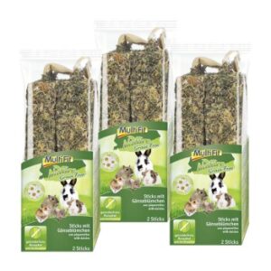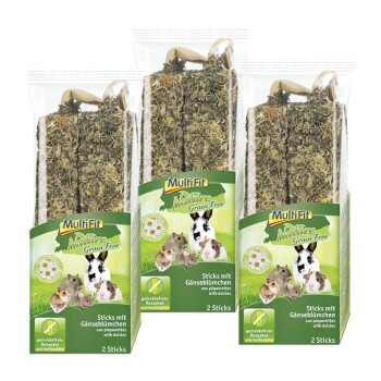 Entdecke die unwiderstehlich leckeren MultiFit Nature Grainfree Sticks – getreidefreier Knabberspaß für dein Nagetier! Belohne deine Nager mit den leckeren MultiFit Nature Grainfree Sticks. Die knusprigen Sticks bieten ein genussvolles Knabbererlebnis und sind perfekt für eine naturnahe und gesunde Ernährung geeignet. Unsere hochwertige, getreidefreie Rezeptur, angereichert mit wertvollen und sorgfältig ausgewählten Zutaten, ist speziell auf die Bedürfnisse deiner Nagetiere und Zwergkaninchen abgestimmt. Das Besondere an unseren MultiFit Nature Grainfree Sticks: Getreidefrei: Für eine natürliche und artgerechte Ernährung ohne Getreide. Artgerechte Beschäftigung: Die Sticks helfen deinem Nager oder Zwergkaninchen, seinem natürlichen Nagetrieb nachzukommen und bieten ihm so eine natürliche Beschäftigung mit viel Knabberspaß. Unwiderstehlich lecker: Die abwechslungsreiche Mischung aus köstlichen Zutaten eignet sich ideal als gesunder Snack oder als Belohnung für deinen Liebling. Einfache Befestigung: Die Sticks lassen sich durch das angebrachte Seil leicht am Gehege befestigen. Entdecke noch heute das vielfältige Sortiment von MultiFit und bringe Abwechslung in den Speiseplan deiner Nagetiere und Zwergkaninchen! MultiFit – Qualität und Vertrauen seit vielen JahrenMultiFit steht für gute und bewährte Qualität zu einem fairen Preis. Die breite Produktpalette bietet für jedes Tier das passende Futter. Ob Nass- oder Trockenfutter, Snacks oder Streu – bei MultiFit triffst du immer die richtige Wahl für dein Haustier. Warum MultiFit? Große Auswahl: Durch das große Sortiments findest du garantiert für jedes Tier das passende Produkt. Expertenwissen: Mit über 25 Jahren Erfahrung steht Multifit für Tierexpertise und weiß genau, wie man Tiere glücklich macht. Freude und Wohlbefinden: Die Produkte von MultiFit machen Spaß und stellen das Wohlbefinden deines Tieres in den Mittelpunkt. Denn nur wenn dein Tier glücklich ist, bist du es auch! Vertraue auf MultiFit – die Marke, die Dich und dein Tier glücklich macht!