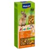 Original Vitakraft Kräcker® sind purer Geschmack und artgerechte Beschäftigung in einem. Denn an den knusprigen Knabberstangen muss sich der Hamster sein Futter selbst erarbeiten! Die fruchtig-nussige Körnermischung ist nach zuckerfreier Rezeptur zusammengestellt und speziell auf Hamster abgestimmt. Das dreimalige Backen in der hauseigenen Vitakraft-Bäckerei garantiert dem Tier extra langen Knusperspaß – das Knabberholz im Inneren der Mischung hilft zudem beim wichtigen Abrieb der Nagezähne. Mit wertvollen Vitaminen für ein gesundes Nagerleben!