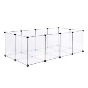 FREILAUF OHNE SORGEN: Schaffen Sie Ihren Nagern ein robustes und pflegeleichtes Innengehege in Ihrem Zuhause, in dem sie sich ausreichend bewegen können und dennoch sicher sind. VARIABLER AUFBAU: Dank des simplen Stecksystems können Sie das Freigehege nach Ihren Vorstellungen aufbauen und wählen, ob Sie die Bodenplatten verwenden oder nicht. INKL. BODEN: Die Bodenplatten schützen Ihren Boden vor Schmutz, geben dem Gehege Halt und verhindern ein Graben durch die Nager. Alle Platten des Stalls sind transparent, damit Sie Ihre Tiere immer sehen können. STABILES UND ROBUSTES MATERIAL: Die Kunststoffplatten sind sehr stabil, wasserabweisend und verformen sich nicht. Zur Reinigung des Auslaufs genügt das Abwischen mit einem feuchten Tuch. DATEN & MAßE: Die Maße des Freilaufgeheges betragen 145x74x47 cm bei einem Gewicht von ca. 4 kg. Sie können das Laufgitter individuell aufbauen und auch erweitern. Die Aufbauanleitung mit allen Daten und das Montagewerkzeug werden natürlich mitgeliefert. Mit diesem Freilaufgehege aus Kunststoff bekommen Ihre aktiven Nager eine ideale Aufenthaltsmöglichkeit in Ihrem Zuhause. Das Innengehege bietet den Kleintieren Bewegungsfreiheit und gleichzeitig Sicherheit. Es besteht aus transparenten Kunststoffplatten zur besseren Beobachtung der Tiere und kann mit oder ohne Bodenplatten genutzt werden. Das simple Stecksystem ermöglicht einen schnellen Aufbau und lässt keine Lücken entstehen, durch die Ihre Tiere austreten könnten. Die Bodenplatten des Kleintierauslaufs schützen Ihren Boden vor Schmutz, verhindern ein Graben durch die Tiere und geben dem Gehege festen Halt. Somit können Sie Ihre Nager getrost auch mal aus den Augen lassen. Die Platten sind sehr stabil, verformen sich nicht und sind zudem wasserabweisend. Der Nagerlaufstall kann durch das Abwischen mit einem feuchten Tuch gereinigt werden. Wir empfehlen den Aufbau des Nagerkäfigs laut der mitgelieferten Aufbauanleitung, jedoch können Sie das Gehege auch individuell aufbauen und durch den Kauf eines weiteren Geheges erweitern. Die Maße des Tierlaufgitters betragen 145 x 74 x 47 cm mit einem Gewicht von ca. 4 kg. Im Lieferumfang enthalten: 1 x Freilaufgehege, Montagewerkzeug, Aufbauanleitung