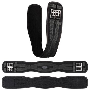 Der Kurzgurt Liam ist ein eleganter Dressurgurt mit großen Rollenschnallen und atmungsaktivem Obermaterial. Die polyesterverstärkte Riemenführung sorgt für eine optimale Druckverteilung sowie hohe Reißfestigkeit. Zudem bietet er maximale Bewegungsfreiheit, ist pflegeleicht und schnell trocknend.