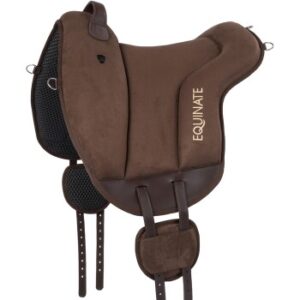 Das Reitpad Hamilton ist die richtige Wahl für Reiter, die gerne Pauschen mögen. Mit seiner speziellen Pauschenform bietet es optimalen Komfort und ermöglicht eine stabile und sichere Sitzposition. Die Oberseite des Pads besteht aus strapazierfähigem synthetischem Wildleder, das nicht nur einen sicheren Halt bietet, sondern auch besonders pflegeleicht ist. Dank seiner flexiblen und anatomischen Form passt sich das Hamilton Reitpad optimal an den Pferderücken an und sorgt für höchsten Komfort für Reiter und Pferd. Die Unterseite des Pads ist aus atmungsaktivem Neopren gefertigt, das eine druckbeständige, schlagabsorbierende und rutschfeste Eigenschaft aufweist. Dadurch wird ein sicherer Halt während des Reitens gewährleistet. Zusätzlich ist das Reitpad mit einem Tragegriff aus synthetischem Leder ausgestattet, der die Handhabung und den Transport erleichtert. Mit der V-Gurtung wird eine gleichmäßige Druckverteilung erreicht, um das Wohlbefinden des Pferdes zu fördern. Zudem bietet das Pad erweiterte Widerristfreiheit und eine Widerristpolsterung, die den Komfort für das Pferd erhöhen. Das Hamilton Reitpad ist mit fünf rostfreien D-Ringen ausgestattet, zwei im vorderen und drei im hinteren Bereich. Diese bieten vielseitige Befestigungsmöglichkeiten für Zubehör. Ein filigran gesticktes Equinate Logo verleiht dem Pad eine elegante Note und unterstreicht die detailverliebte Verarbeitung. Als besonderes Extra verfügt das Pad über eine zusätzliche Schutzschicht im unteren Teil des Sattelblattes, die nicht nur als Designelement dient, sondern auch die Langlebigkeit des Pads gewährleistet. Entdecken Sie mit dem Hamilton Reitpad ein Reiterlebnis der Extraklasse. Genießen Sie den Komfort, die Sicherheit und die Qualität, die dieses einzigartige Pad bietet. Tipp: Wir empfehlen das Ponypad bei kleinen Ponys und kleinen Kindern einzusetzen. Es ist ca. 10 cm kürzer als das Pad in Größe „Pferd“. Auch für den Einsatz bei Endmaßponys und Isländern würden wir eher Pads in Größe „Pferd“ empfehlen. Teilweise passen Erwachsene mit Hosengröße 34 noch auf das Ponypad drauf, da aber nicht wie bei einem gewöhnlichen Sattel im hinteren Bereich durch etwas feststehendes Druck entsteht, ist es unbedenklich, wenn das Pad eher zu lang ist. Größe Pferd: – Rückenlänge: ca. 56cm – Seitenlänge: ca. 52cm Größe Pony: – Rückenlänge: ca. 46cm – Seitenlänge: ca. 46cm – Pauschenform optimal für Reiter die mehr Pauschen bevorzugen – sicherer halt durch synthetisches Wildleder – flexible und anatomische Form – pflegeleichte anti Rutsch Unterseite aus Neopren – atmungsaktiv – Tragegriff aus synthetischem Leder – V-Gurtung für eine gleichmäßige Druckverteilung – erweiterte Widerristfreiheit und Widerristpolsterung – fünf rostfreie D-Ringe – filigran gesticktes Equinate Logo – zusätzliche Schutzschicht im unteren Teil des Sattelblattes – Gurtstrupfen werden zusätzlich durch Patches stabilisiert