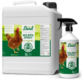 Gefieder & Hautpflege Milben Spray für Hühner Unser HÜHNER Land Milben Spray für Hühner & Geflügel ist ein Repellent zur Unterstützung der Abwehr von Milben und Parasiten. Milben, Federlinge und Läuse können sowohl bei jungen als auch älteren Tieren auftreten und zu Hautreizungen und Juckreiz führen. Ein geschwächtes Immunsystem, Stoffwechselprobleme, Mineralstoffmangel oder die saisonbedingte Mauser können den Befall mit Ektoparasiten verstärken. Die ausgewählten Inhaltsstoffe im Milben Spray für Hühner tragen zu einem Schutzschild bei. Unser Milbenspray kann nicht nur als direktes Spray auf dem Gefieder, sondern auch als Umgebungsspray für die Lege- und Ruheplätze Deiner gefiederten Freunde verwendet werden, um die kleinen ungebetenen Besucher fernzuhalten. Effektives Milbenspray für Vögel und Geflügel gegen Milben und Parasiten Wirksame Rezeptur auf Basis ätherischer Öle Bei Befall und vorbeugende Anwendung Auch als Umgebungsspray geeignet Unsere HÜHNER Land Produkte werden in Deutschland von Experten entwickelt & hergestellt. Zum Wohl Deiner Hühner setzen wir auf 100% Qualität.