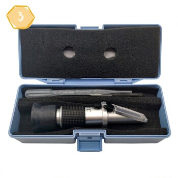 Das Refraktometer Basic von My Little Farm verfügt über eine Zucker- und Wasserskala zur Prüfung des Wasser- und Zuckergehalts im Honig.Das werkseitig eingestellte Messwerkzeug für Imker ermöglicht, trotz seiner kompakten Abmessungen, eine zuverlässige Bestimmung des Wasser- und Zuckeranteils im Honig. Durch die automatische Temperaturkompensation istdie Bedienung kinderleicht. Das Gerät verfügt über ein stabiles Metallgehäuse, eine lichtstabile Optik und wird inklusive praktischem Schutzetui geliefert.