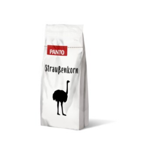 PANTO® Straußenkorn ist zusammengestellt aus ausgewählten Rohstoffen und universell einsetzbar. Das Futter enthält alle lebenswichtigen Vitamine, Mineralstoffe und Spurenelemente und ist „eher energieärmer“ einzustufen, wodurch ein restriktiveres Wachstum unterstützt wird und die Tiere nicht so leicht verfetten. Ideal geeignet für Strauße, Nandus und Emus.Straußen-FactsStraußen werden seit Mitte des 19. Jahrhunderts in menschlicher Obhut gehalten und gezüchtet.Daraus wurden im Laufe der letzten 150 Jahre 3 Rassen herausgezüchtet: der größte ist der Rothalsstrauß, der kleinere Schwarzhalsstrauß und der Blauhalsstrauß, der hauptsächlich in Europa zur Fleischproduktion gehalten wird.Seit Anfang des 20. Jahrhunderts werden bei uns Strauße (die ersten Strauße wurden 1906 von Karl Hagenbeck nach Deutschland gebracht), aber auch Nandus, und Emus gehalten. Diese unterschiedlichen Laufvögel aus allen Erdteilen erfordern eine angepasste Fütterung, denn die Hauptnahrungsquelle ist Weide. Sie sind vorwiegend Pflanzenfresser (Körner, Gräser, Kräuter, Blätter, Blüten und Früchte). Wobei ca. 70 % ihres Futters aus Gras besteht. Strauße kommen mit karger Nahrung, die bevorzugt vom Boden aufgepickt werden kann, bestens zu recht. Nur gelegentlich nehmen sie auch Insekten und andere Kleinsttiere zu sich.Um die Zerkleinerung der Nahrung zu fördern, schlucken Strauße Sand und Steine. PANTO® Straußenkorn ist speziell auf diese Gegebenheiten angepasst. Es ist ein universell einsetzbares Zusatzfutter für alle Laufvögel. Es eignet sich besonders als Erhaltungsfutter, für die Mast (Endmast) und für Zuchttiere in der Ruheperiode.