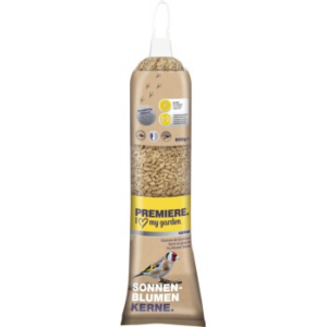 Mit dem PREMIERE Sonnenblumenkernspender bieten Sie Ihren gefiederten Gartenbesuchern ein schmackhaftes und besonders reichhaltiges Erlebnis. Die Sonennblumenkerne sind frei von Schalen, somit hinterlassen sie keine schmutzigen Rückstände und sind ideal zur Balkon- und Terrassenfütterung geeignet. Das Bionetz ist zu 100% industriell kompostierbar. Druch die Perforation unterhalb der Verpackung ist das Futter vor Witterung geschützt.
